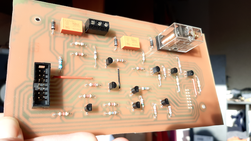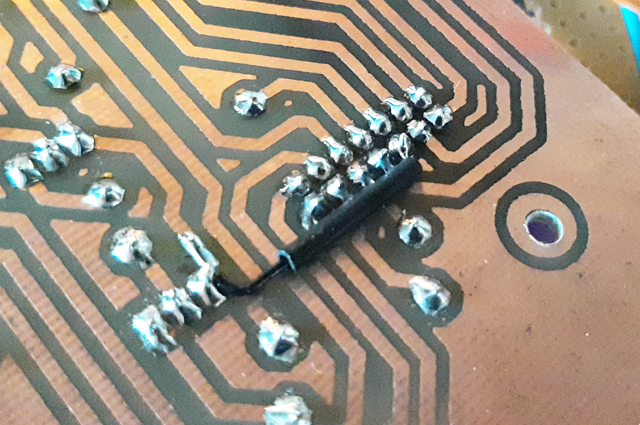 En toen stopte de richtingaanwijzer plotseling met werken: de pijltjes bleven continue branden, terwijl ik het relais wel hoorde klikken. Banenprint en de beperkingen ervan, en het risico op kortsluiting door draadjes die aan de onderzijde gesoldeerd zijn openbaarden zich op deze manier.