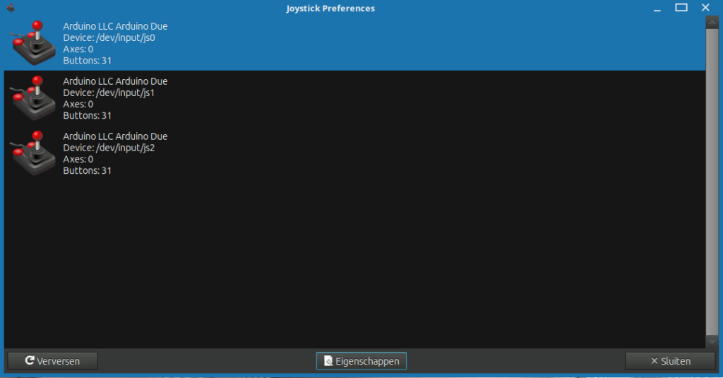 Daarom wilde ik de joystick-code op de Due aanpassen zodat ik 3 joystick-apparaten zou creëren. Zo kan OMSI er 1 volledig oppakken en hoef ik er nog maar 2 via AntiMicroX naar virtuele joysticks uit te voeren. De Arduino Due code werd daarom aangepast en creerde 3 joysticks. Maar die zag ik niet in Linux. De Arduino Due bleef zichzelf maar presenteren als 1 apparaat…
